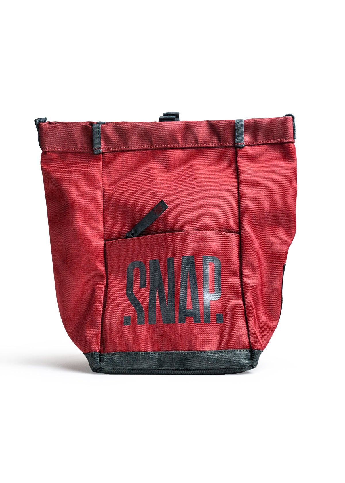 地面に安定しておくことができる、大型のチョークバッグです。ロールトップ式でチョークが漏れにくく、前背面にファスナー付きポケット、背面にブラシホルダーを備えています。裏地はフリース素材になっています。