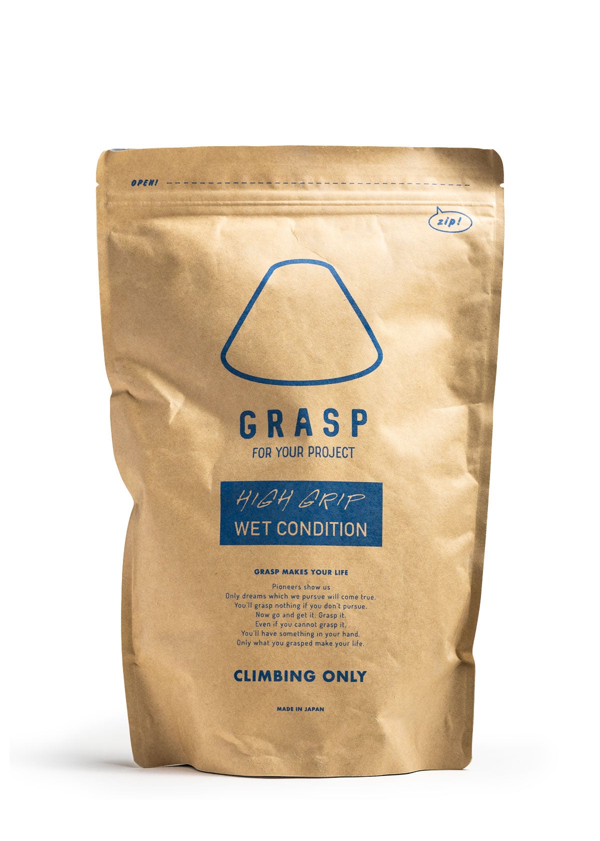 GRASPは、「クライマーに最も信頼されるチョークを作る」という目標のもとスタートしました。スポーツ用滑り止め材で国内トップの製造量を誇るノウハウを注ぎ、世界的トップクライマー小山田大氏の豊富な知識と経験、現在までに培った感覚を共有し、2017年初めより開発が始まりました。考え得るたくさんの素材や配合を納得いくまで繰り返し、試作も数百を超え、あらゆる可能性を探り、約1年の試作期間を経て、高性能チョーク『GRASP』の完成です。