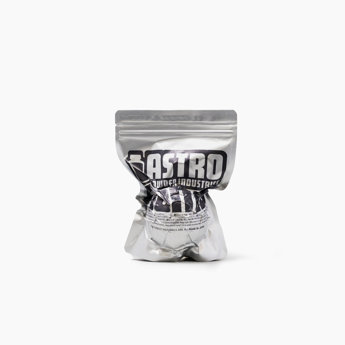ASTRO BALLは、一見普通のチョークボールですが、使い方やその効果は全く異なります。ボールの生地自体に特殊な加工を施し、触ると指のフリクションが上がります。中身はBLACKの変化系が入っています。この生地と中のチョークとがMIXされ、悪天候のコンディションの中でも最良の状態で登ることを可能にします。梅雨でも夏でも、冬のような状態に。まさに宇宙の神秘。